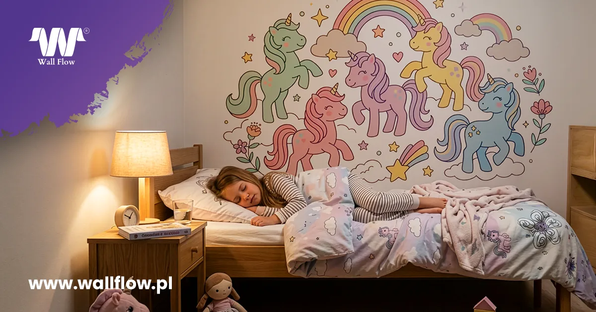 Powód jest prosty – technologia druku na ścianie daje znacznie większą swobodę projektową. Architekt może zaprojektować grafikę dopasowaną dokładnie do proporcji ściany, bez konieczności dzielenia projektu na segmenty.